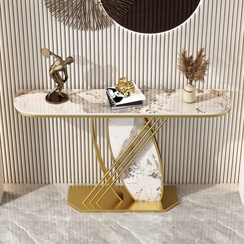 2024 YOUTAI Características únicas de lujo Pasillo de entrada Mesas de consola doradas Material de mármol