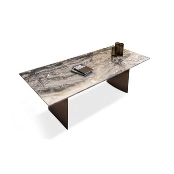 Modern ışık lüks dikdörtgen ev dikdörtgen ev mermer kaya levha yemek masası ve sandalyeler