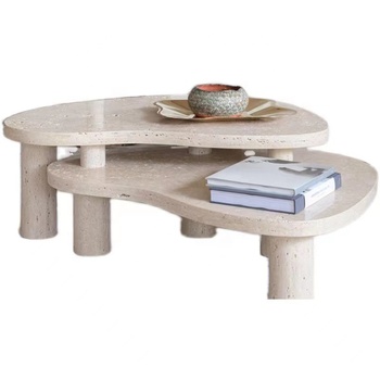 Youtai İtalyan minimalist doğal sarı traverten kahve masa lambası lüks oturma odası kahve sehpası set