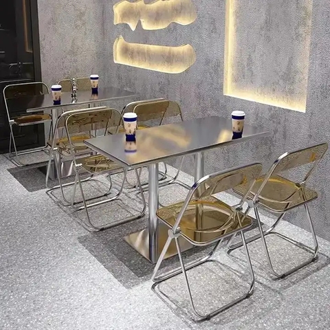 Современные гостиничные рестораны из нержавеющей стали, прозрачные акриловые обеденные стулья, складные кофейные стулья