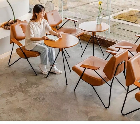 Обеденный стул для ресторана, современная мебель, металлический стул и стол из натуральной кожи